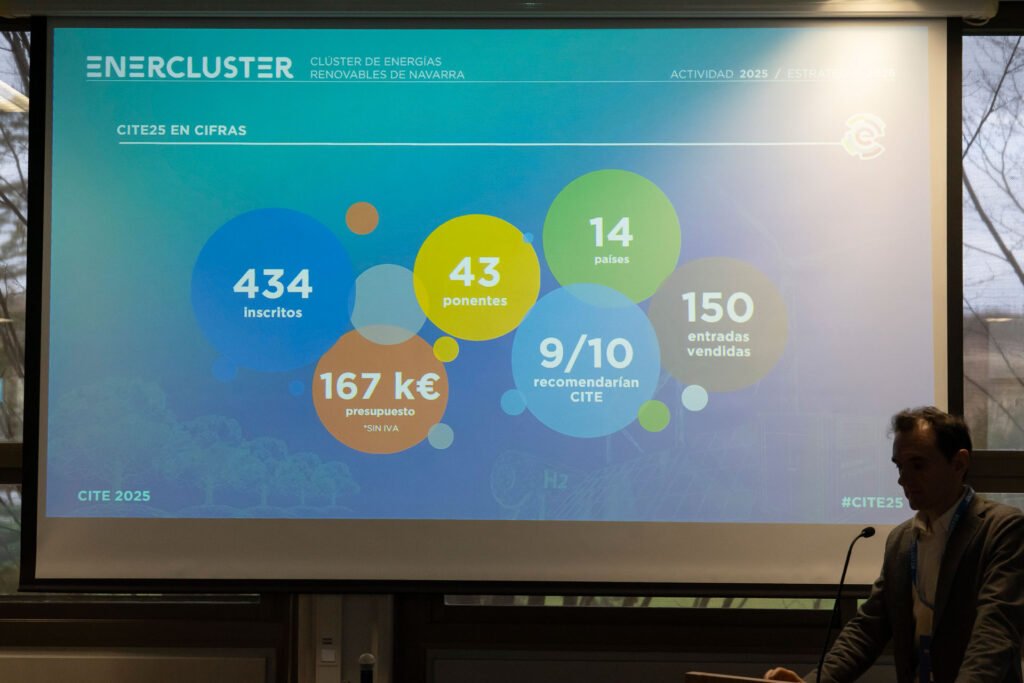 Kiko Maza, director de Comunicación de Enercluster, destacó el papel del IV Congreso Internacional de la Industria para la Transición Energética – CITE 2025, que organizaron en octubre con una participación de récord, como escaparate internacional del ecosistema renovable de Navarra.