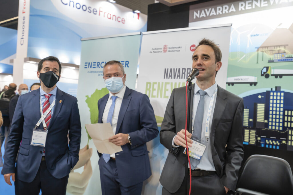 En la segunda jornada de la feria se disfrutó de un vino/recepción organizado junto con Gobierno de Navarra. Javier Villanueva, Gerente de Enercluster; Kintxo Ancín, Presidente de Enercluster y Mikel Irujo, Consejero de Desarrollo Económico; compartieron unas palabras en las que trasladaron su trabajo y compromiso con nuestra industria.