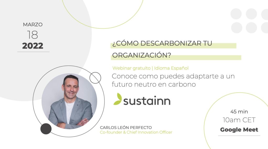 Nuestra empresa asociada SUSTAINN organiza el próximo 18 de marzo un webinar sobre descarbonizar las empresas.